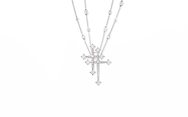 (左)「S」中石 0.18ct 脇石計約 1.0ct チェーン 60cm ¥1,320,000~ (税込) (右)「A」中石 0.18ct 脇石計約 0.8ct チェーン 60cm ¥1,210,000~ (税込)