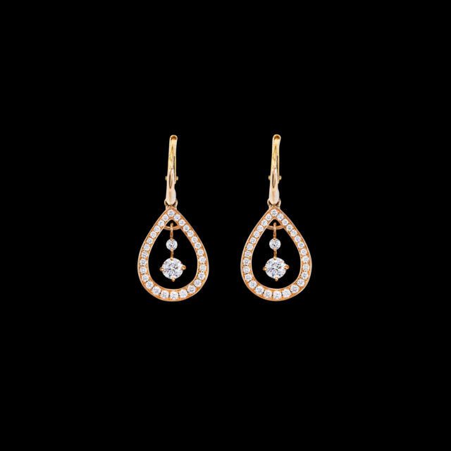 滴の中に2石のブリリアントカットダイヤモンドを配し、輝きを強めています。